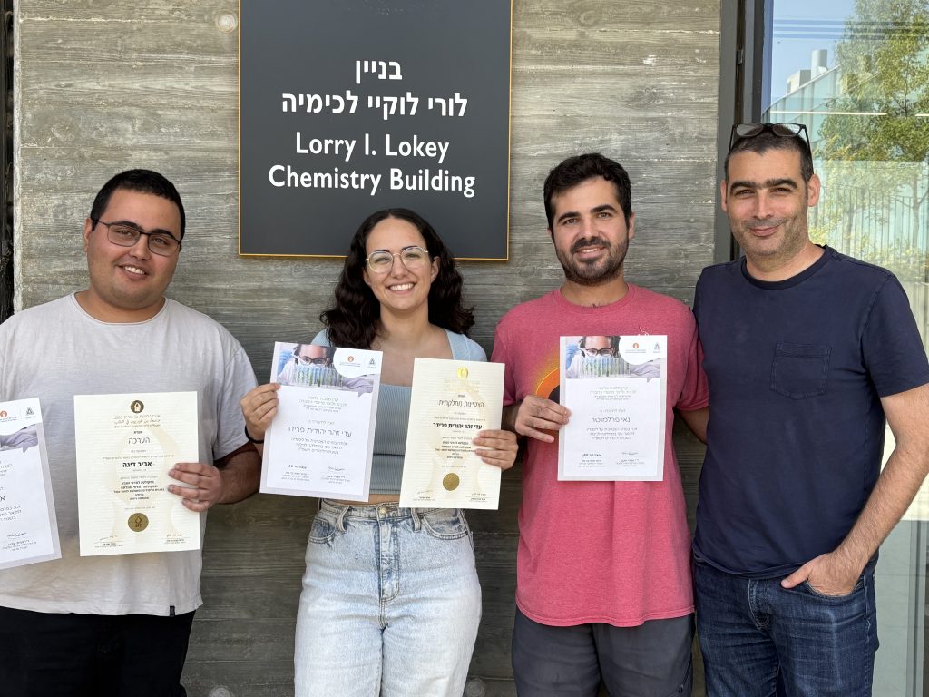 Congrats to our three students, Aviv Diga, Adi Fryder and Yanai Pearlmutter for receiving various awards! Congrats to Aviv for receiving the B.Sc Adama Award and certificate of appreciation for Excellence in his studies. Adi received the M.Sc Adama Award and Head of Department excellence award! Also congrats to Yanai Pearlmutter for receiving an M.Sc Adama Award. Keep up the good work!